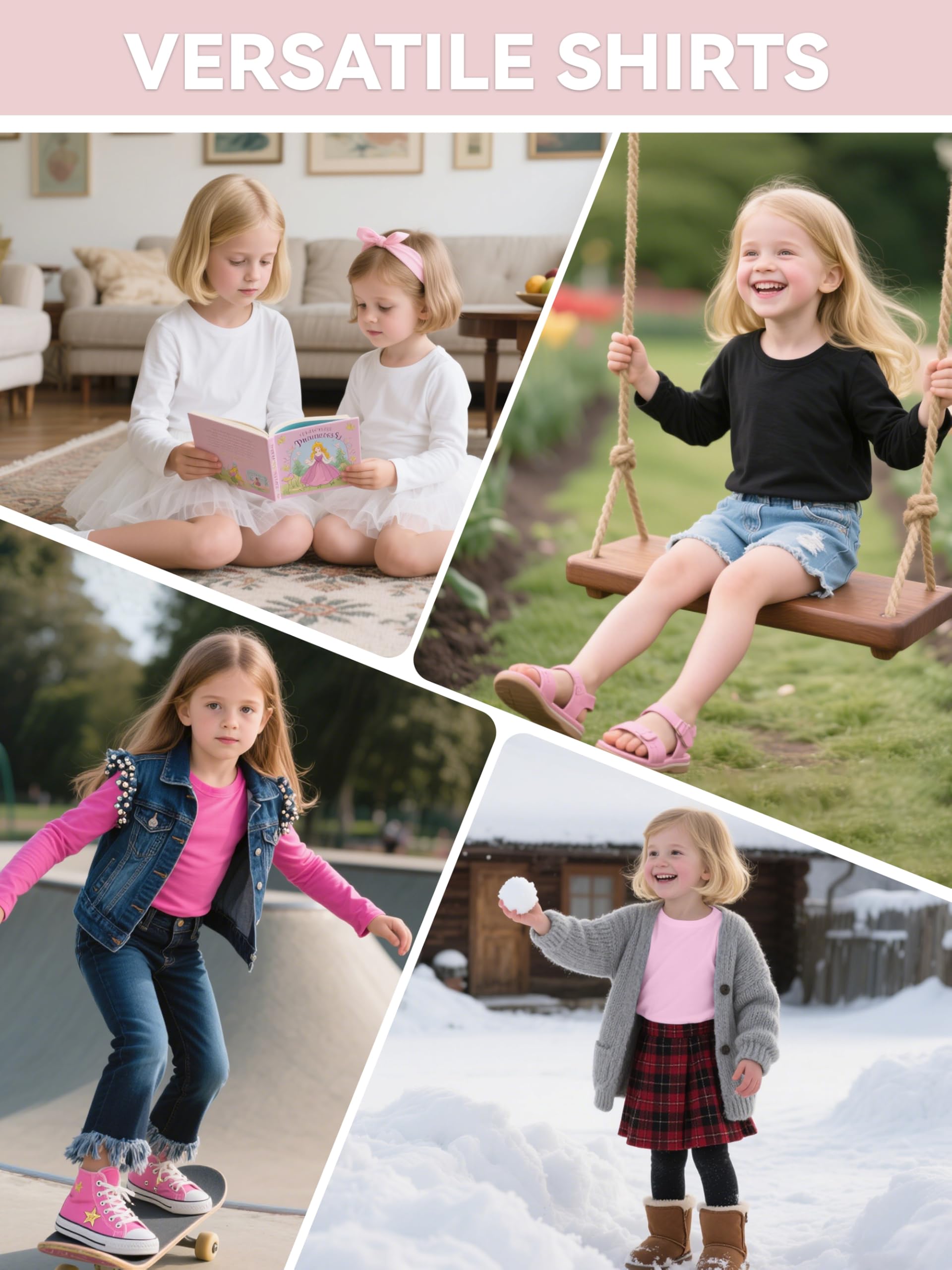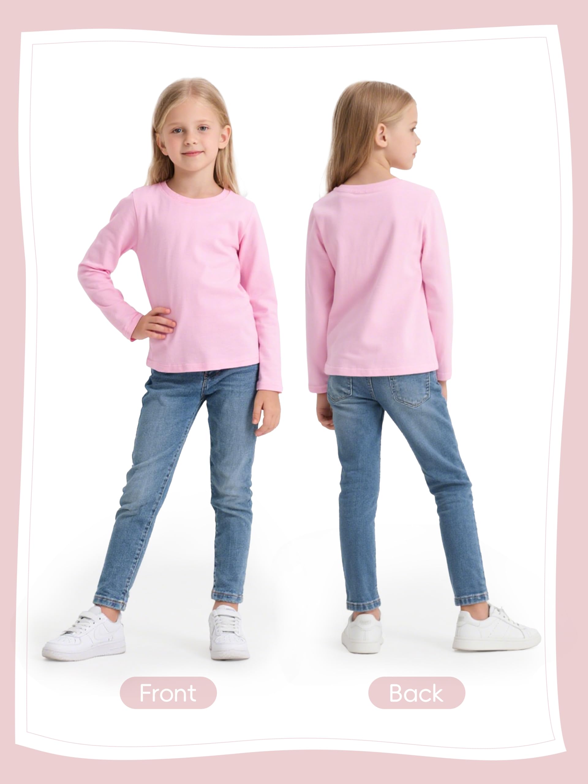 Package Details: Each package contains 5 basic long-sleeved T-shirts for girls, which are essential for any season and an perfect choice for casual and layered wear.