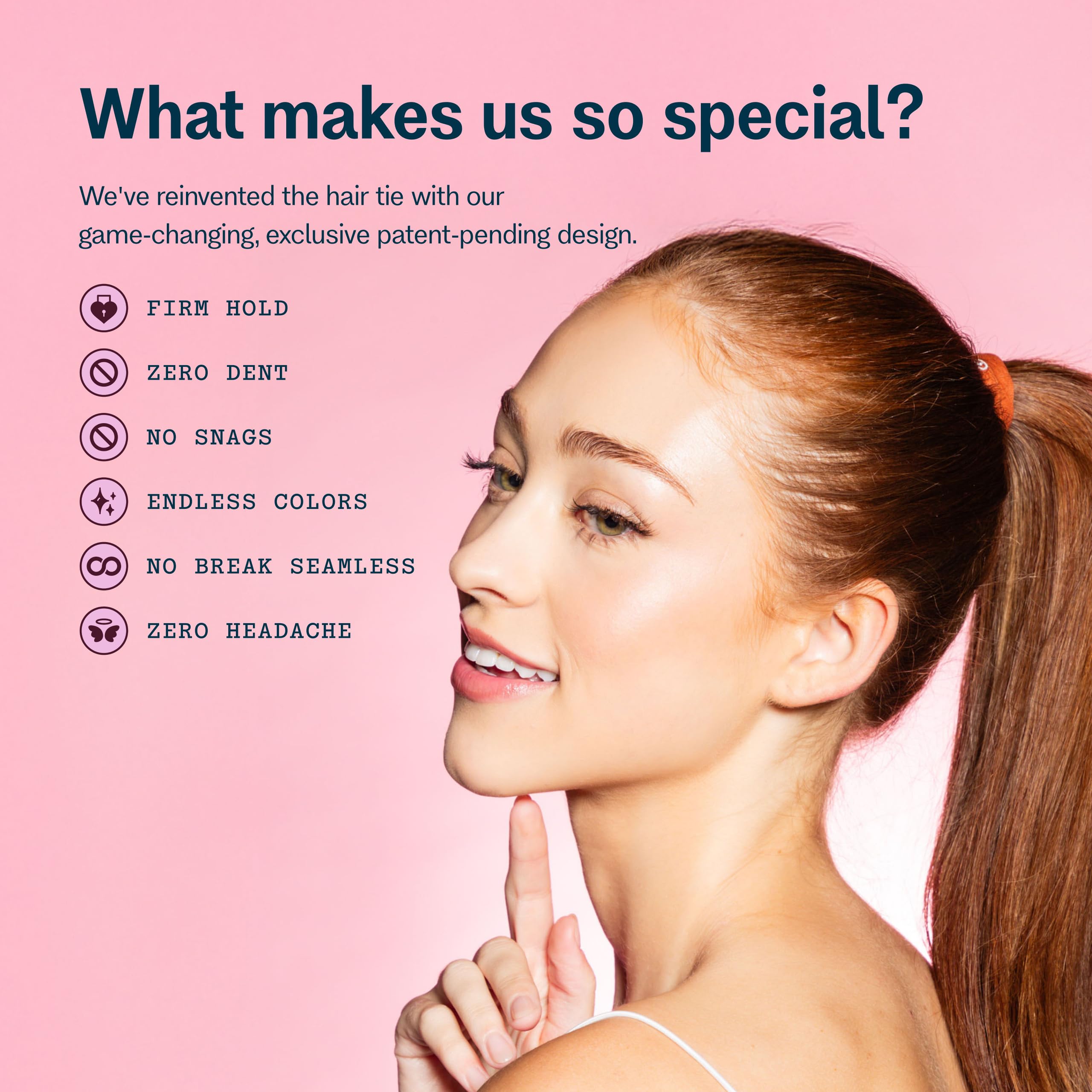 Introducing the perfect solution for fine, brittle, or bleached hair with Gimme Beauty Fine Hair Elastic Bands. These innovative hair ties feature a patent-pending design specifically engineered to provide a gentle yet secure hold while helping protect your delicate strands throughout the day.These nylon and spandex hair bands are thoughtfully crafted with seamless construction to help prevent common styling discomforts like headaches and hair dents. The specialized stretch-to-fit technology works to maintain a comfortable grip while being gentle enough as an everyday-use hair tie, making them ideal for creating lasting hairstyles without compromising hair health.Each elastic in this pack features a unique blend of nylon, silk, and spandex materials that helps provide snag-free styling versatility. Whether you're securing a ponytail, finishing off a braid, or creating everyday hairstyles, these hair ties offer the perfect combination of flexibility and hold for fine hair types.At Gimme Beauty, we believe hair solutions aren't one size fits all. We understand that each person's hair journey is unique, which is why we've designed these hair ties to work for all hair types, helping you feel confident and unstoppable in your daily life.We celebrate the sisterhood that grows from our shared experiences with hair. While some brands focus on exclusivity, we believe in creating accessible, inclusive products that work for everyone. Our mission goes beyond hair accessories—we're here to amplify your confidence because we know that confident women are unstoppable.