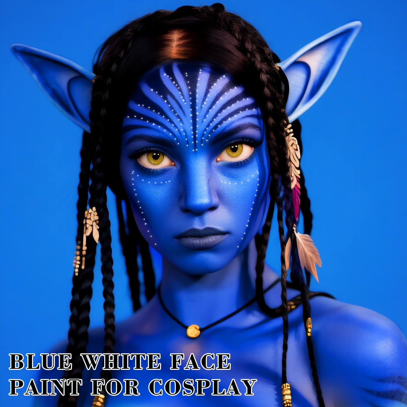 WATER BASED FACE BODY PAINT:The water based rayol blue face paint set contains white and blue cream face body paints with 2 sponges.The net weight of each one is 30 ml/1.01 oz and it can be used for face and body