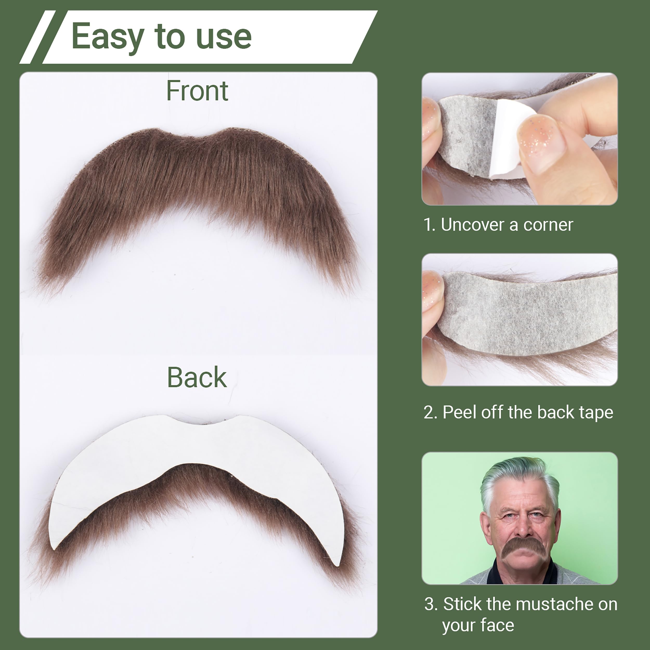 Versatile and Reusable: instant false facial hair, easy to put on and to take off. Can be reused multiple times, for special needs, the mustache can also be trimmed and combed