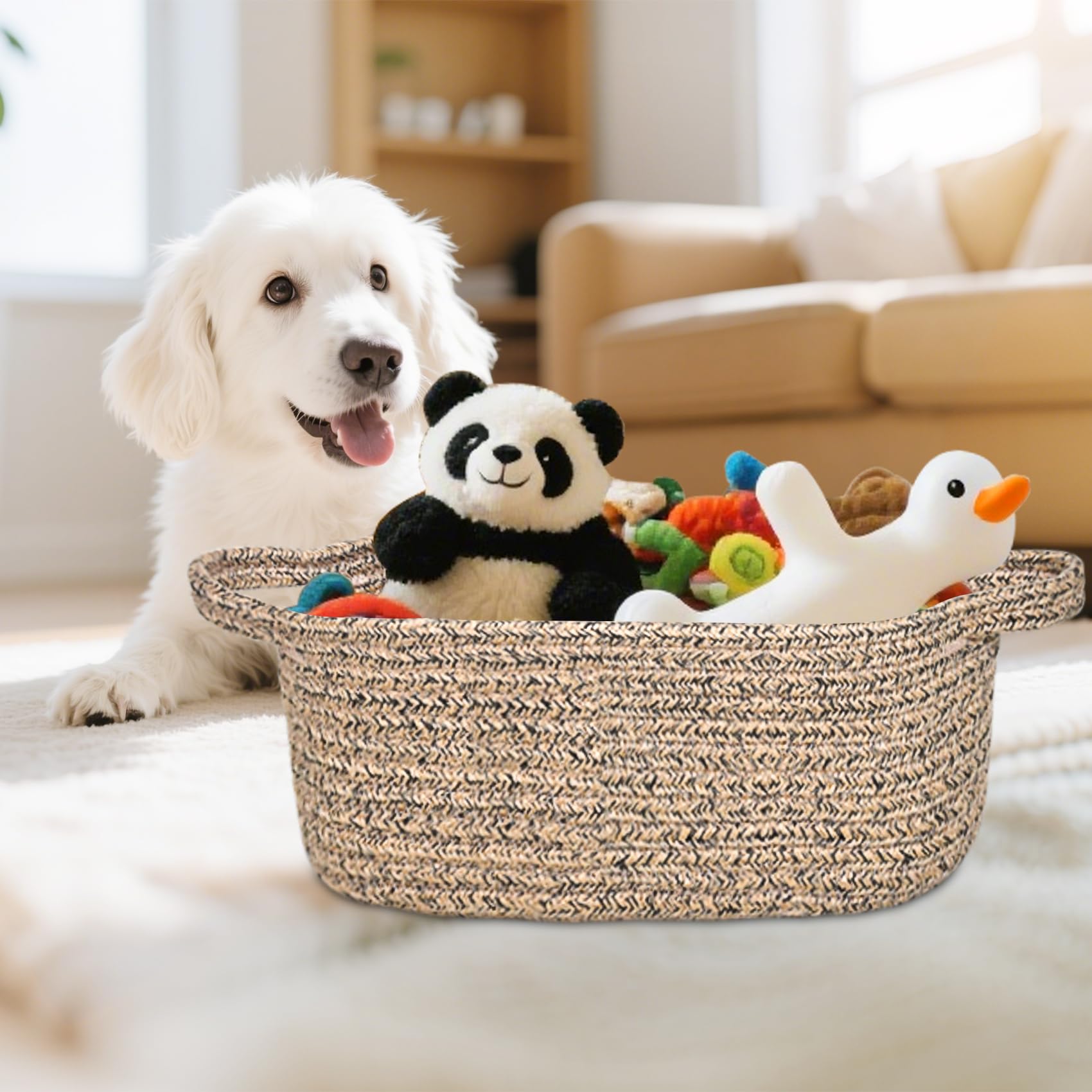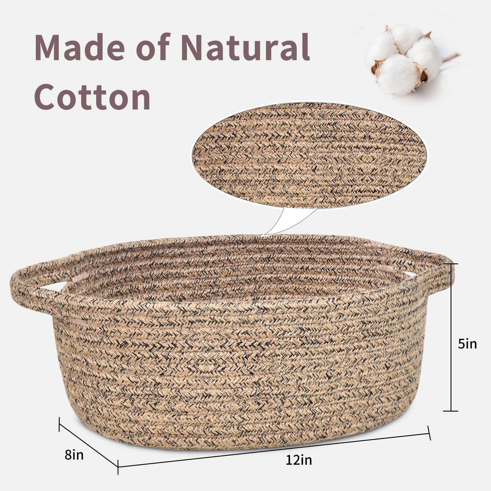 100% cotton material, small rope basket, natural, chemical-free, skin-friendly, woven basket safe for baby and pets, scratch-free to floors or walls