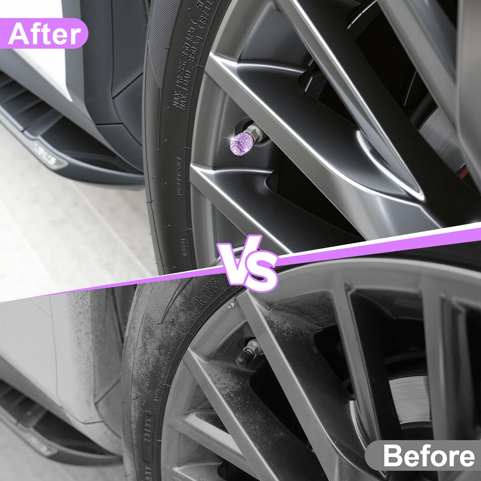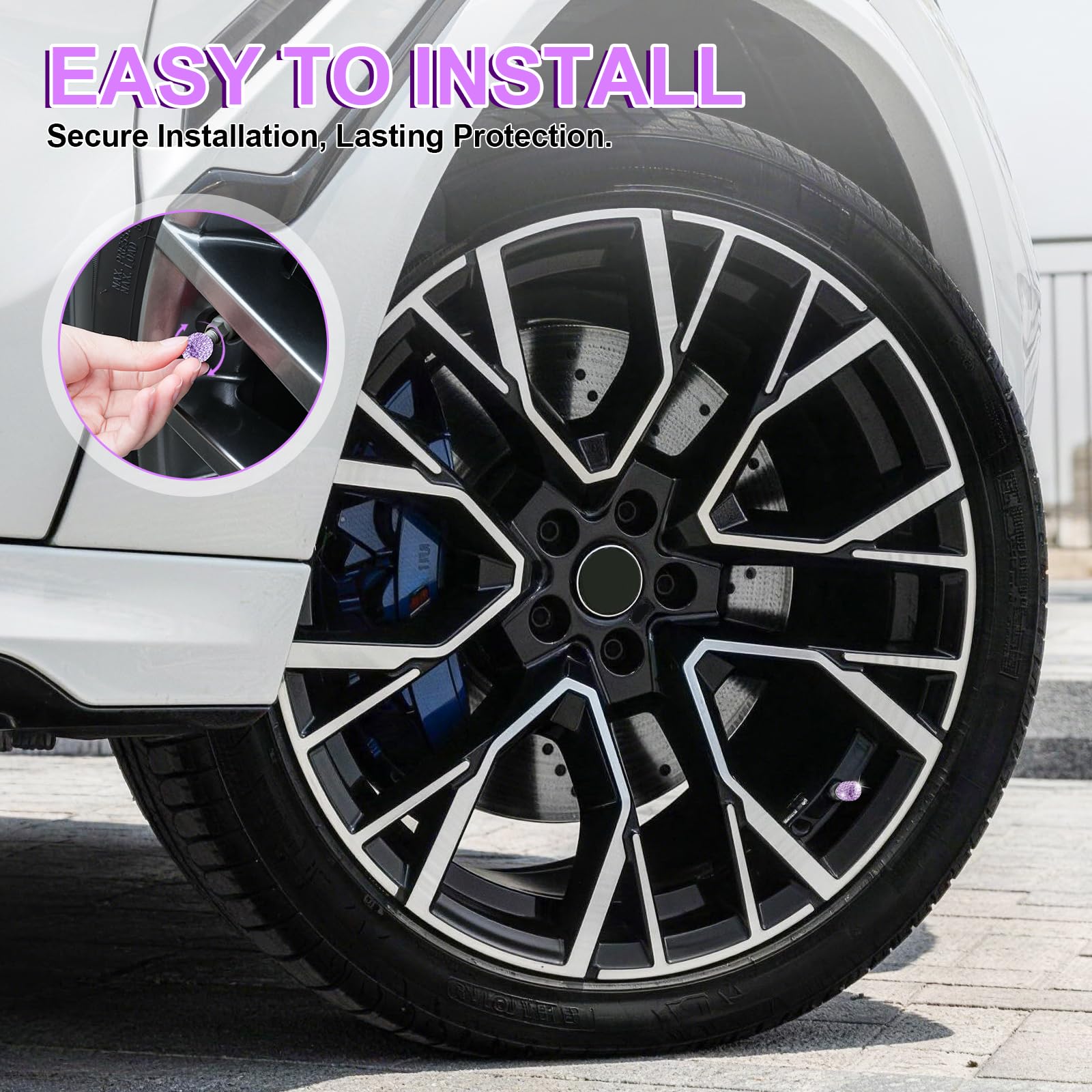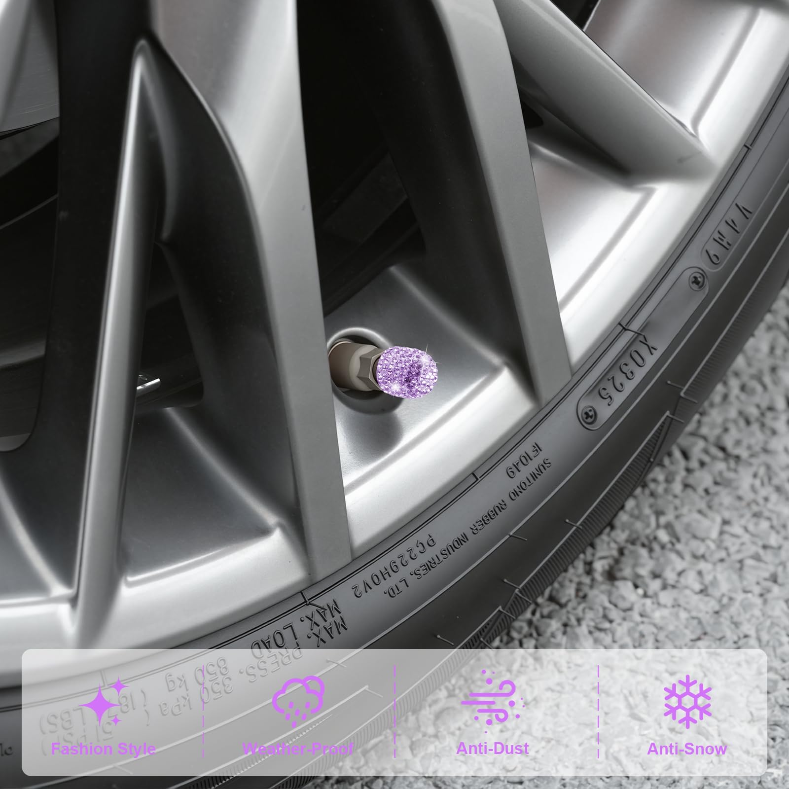 The tire caps are made of Sparkling Rhinestones material, beautiful appearance with shiny diamond, give your car a unique luxury look and make it a great car accessory gift for women.