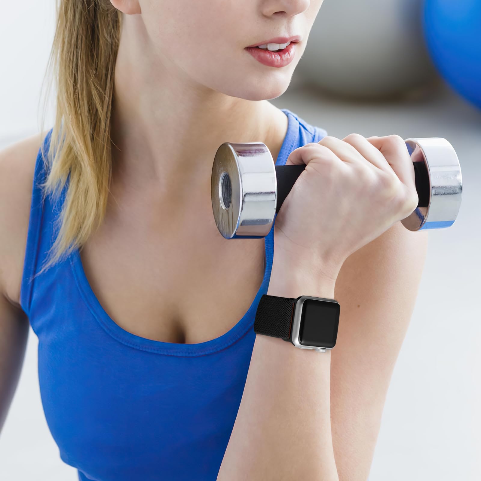 【Elasticity & Size Adjustable】DaQin sport nylon loop straps for apple watch band 44mm with strong stretchy elastic, keeps your watch snugly to your wrist, doesn't rub on wrist, easy to put on and off. The elastic loop bands features stylish stainless steel buckle, allows you easy to adjust the size of the loop as you wish, solve the size trouble perfectly. Suitable for wrist size 4.5-9.5 inch