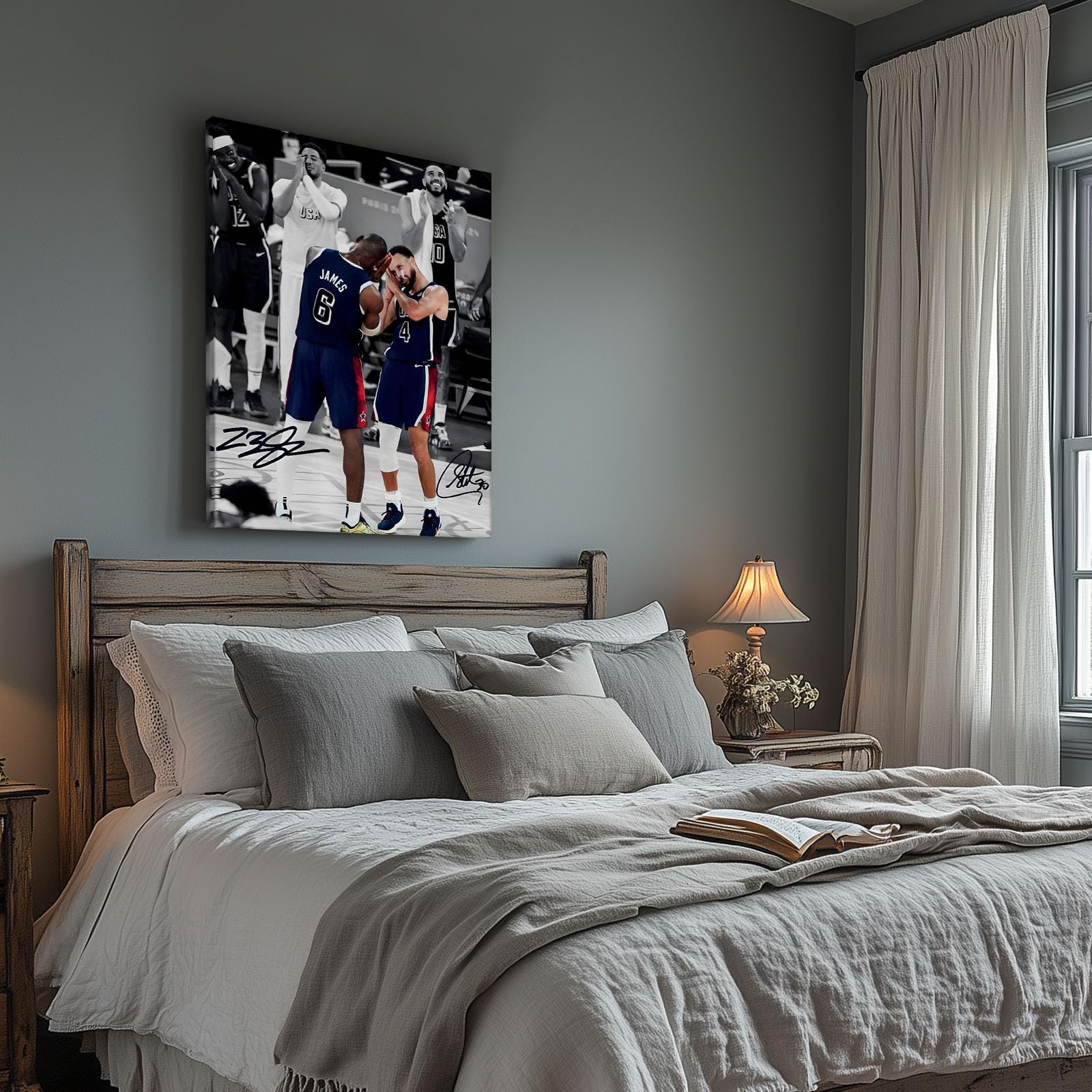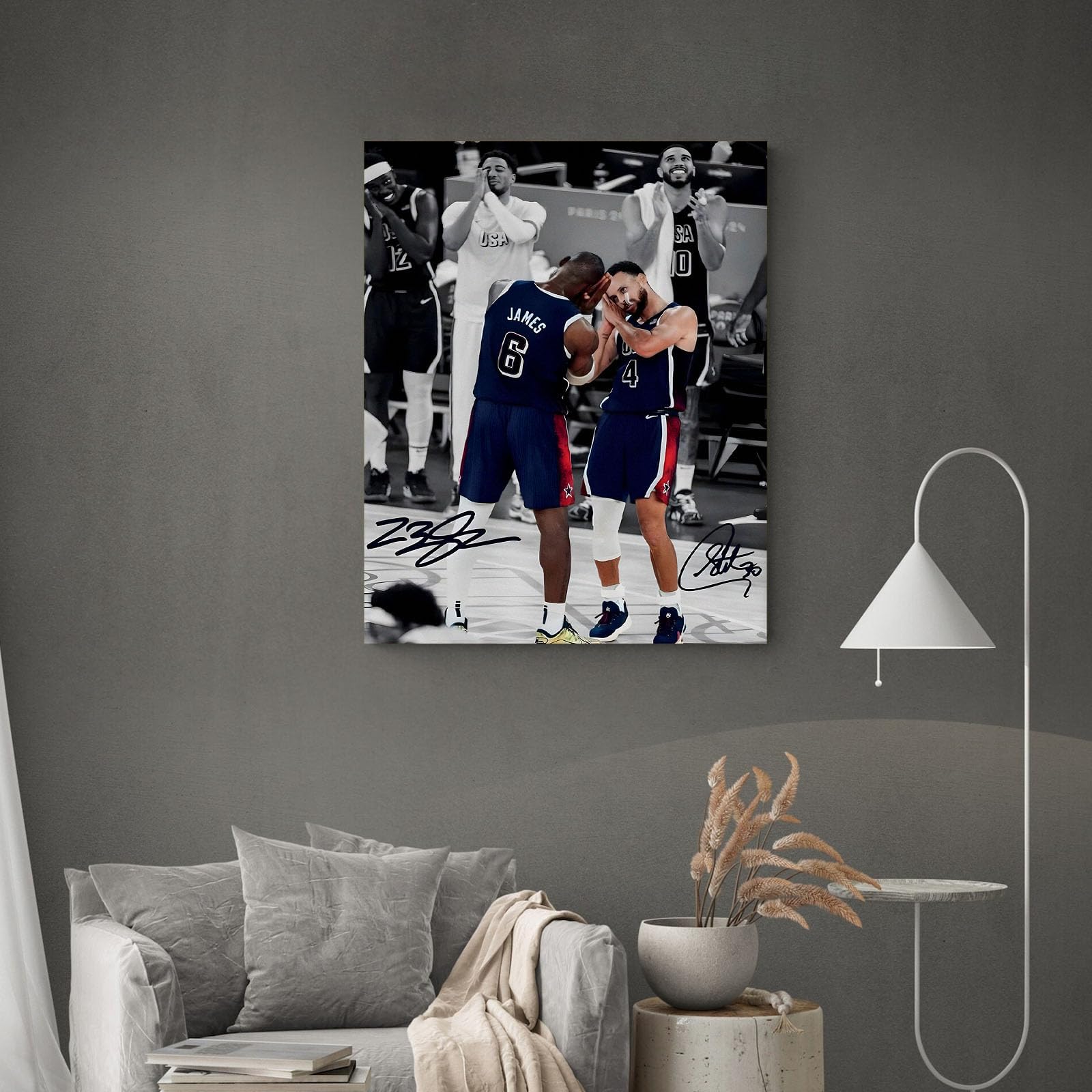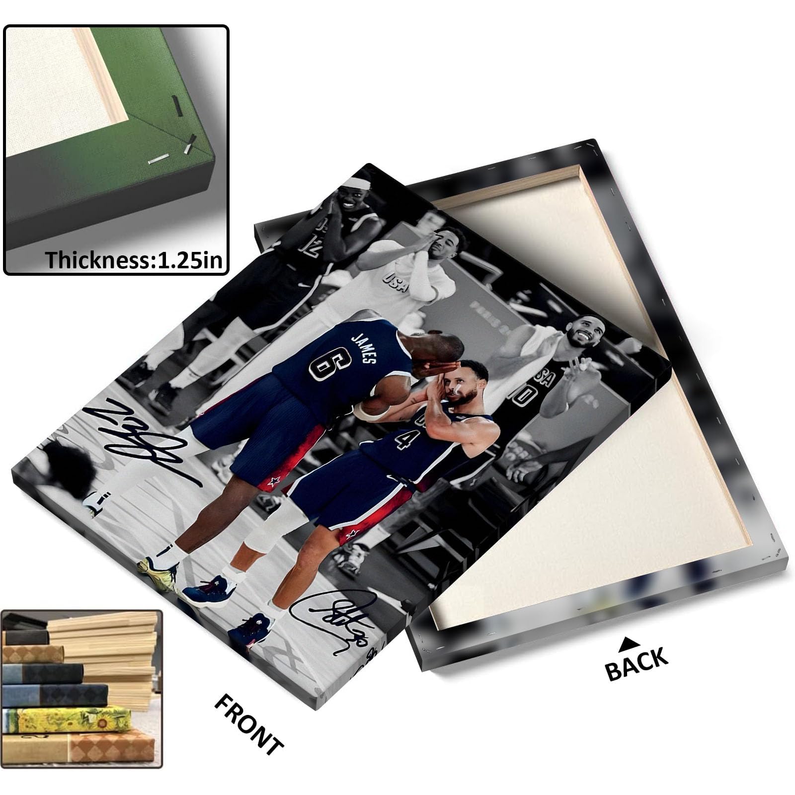 Clean Print Detail on Woven Canvas – Printed with color inks on woven canvas for crisp lines, strong contrast, and solid color areas—great for sports-themed room decor and basketball wall art displays.