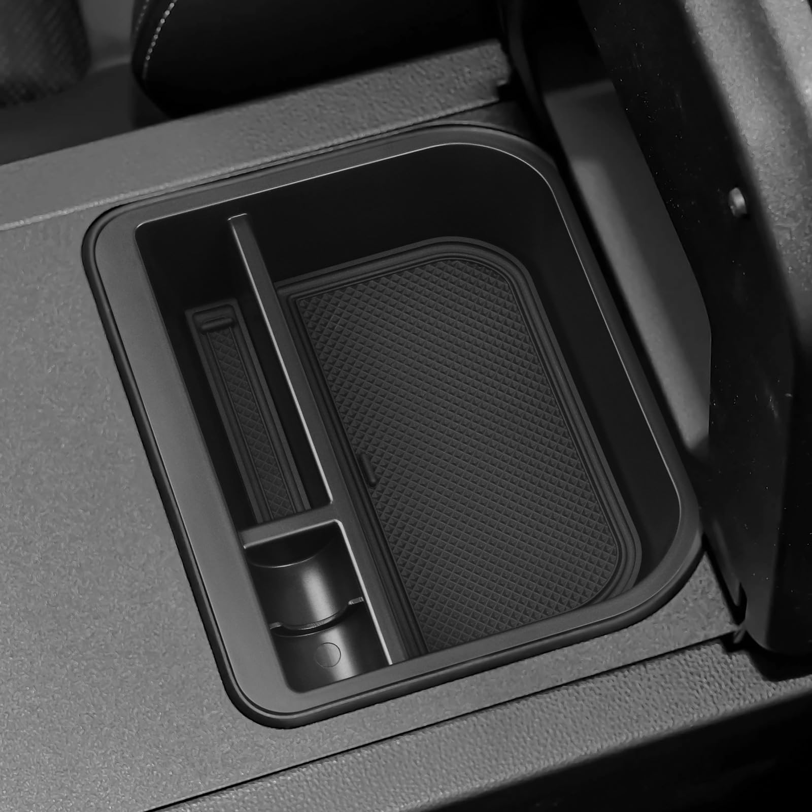 Anti-Slip Silicone Mat:The Center Console Organizer features an anti-slip silicone mat that keeps your items securely in place, preventing unwanted movement while you drive.