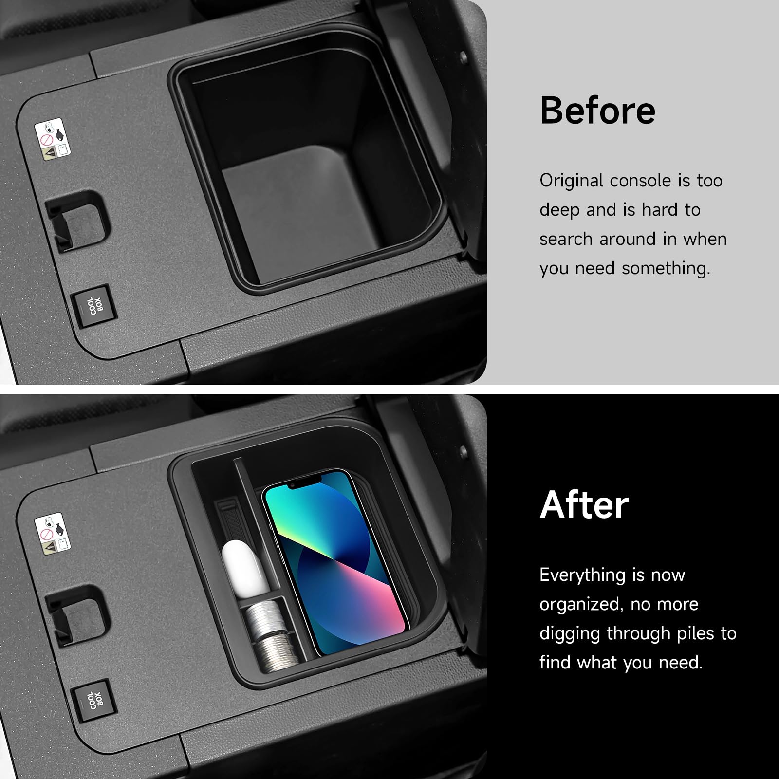 Special Design:Designed specifically for Toyota 2024-2026 Land Cruiser Prado 250 & 2024-2026 GX550 model (Only Fit Cool Models), this Center Console Organizer seamlessly fits into your car's interior, enhancing both functionality and aesthetics.