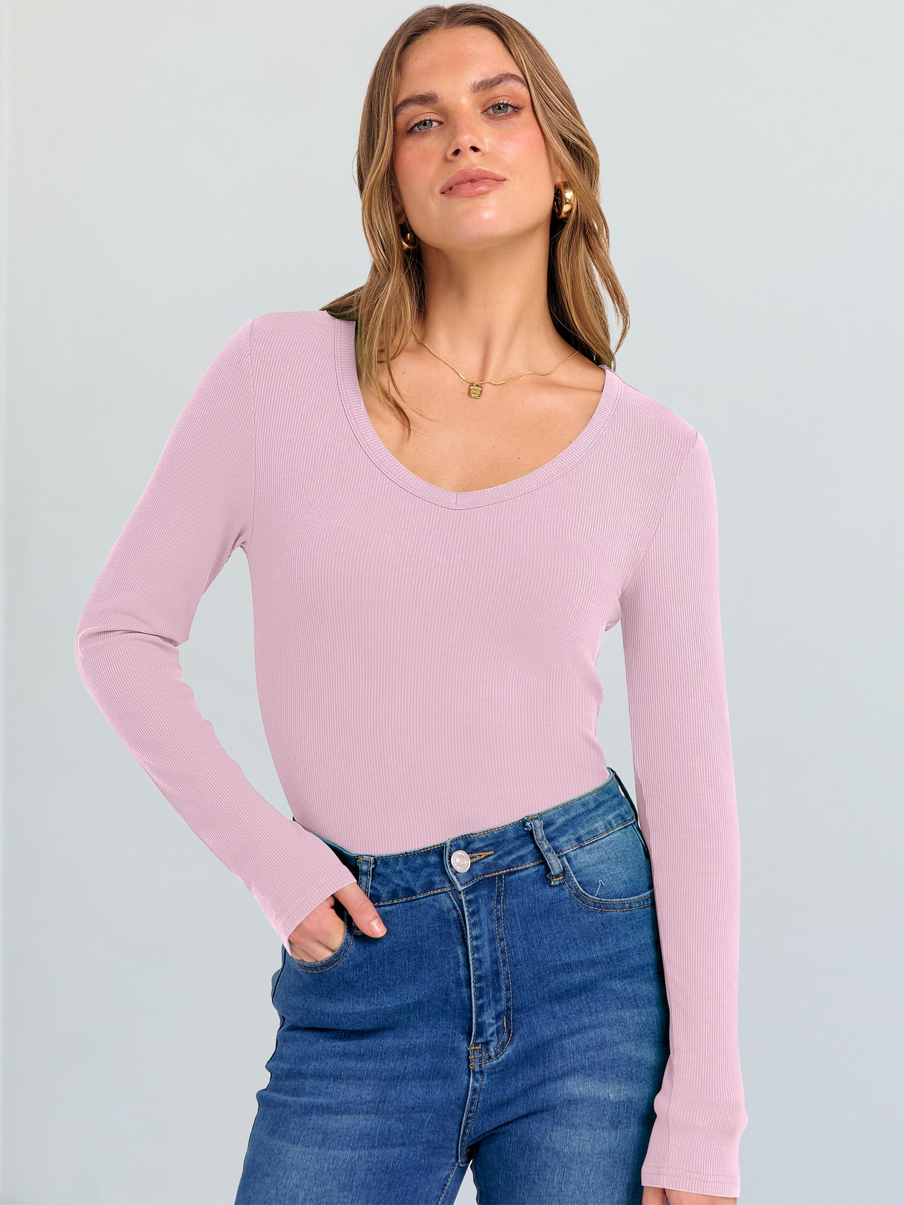 Features - Women's fall Y2k basic v neck knit tops, ribbed knit, long sleeves, and slim fit design.This women's shirts is perfect for daily wear, home, work, street wear, vacation, shopping, cafes and other casual occasions.