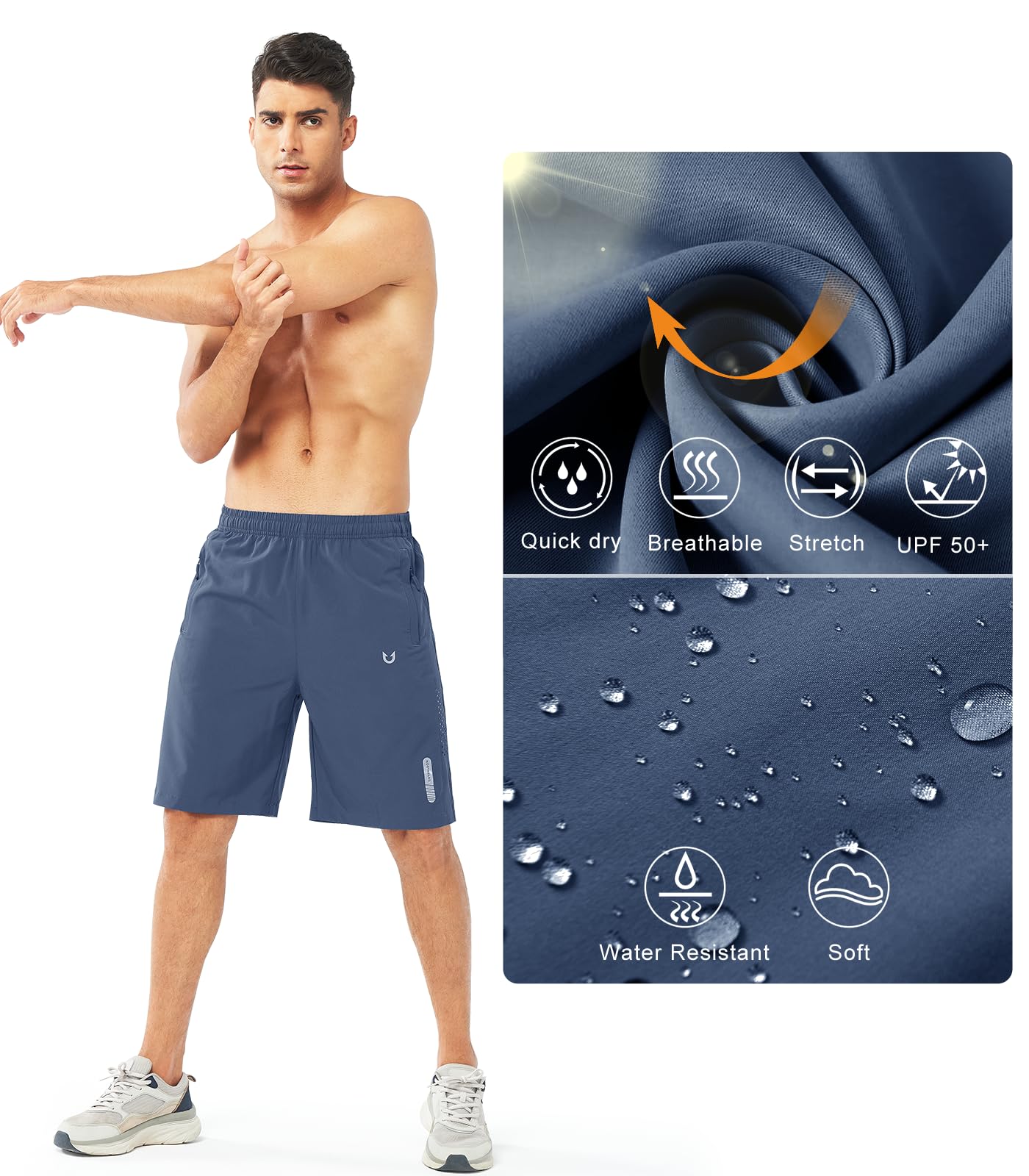 Lightweight & Breathability: Men's athletic hiking Shorts are made quality 4-Way Stretch/breathable and quick-drying fabric helps to wick away moisture and dry quickly keep you cool A synthetic of polyester and spandex can be very durable, abrasion-resistant, and stretchy enough to allow for better mobility
