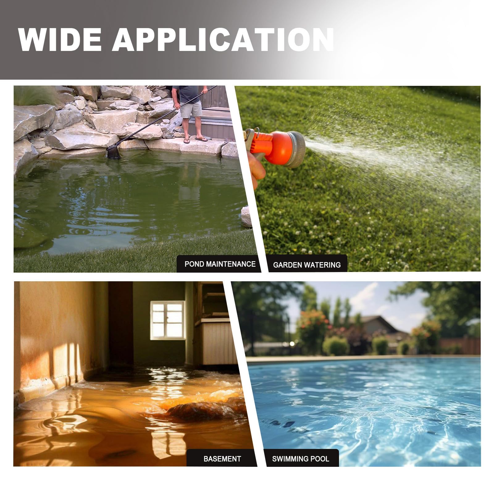 Wide Application: Perfect for garden tanks, rain barrels, ponds, hot tubs, basements, bathtubs, and general water removal tasks. Ideal for draining, irrigation, sprinklers