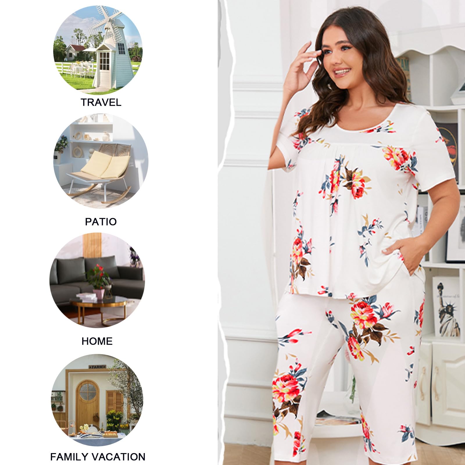 Features and Functions: They are made of a slightly silkier, cool and softer material, keeping you cool in the heat. Beautiful colors, floral, roomy, flowy, loose fitting, the elastic wasteband on the Capri-length bottoms was a flexible. It has nice deep pockets, which are deep enough to hold my cell phone without falling out