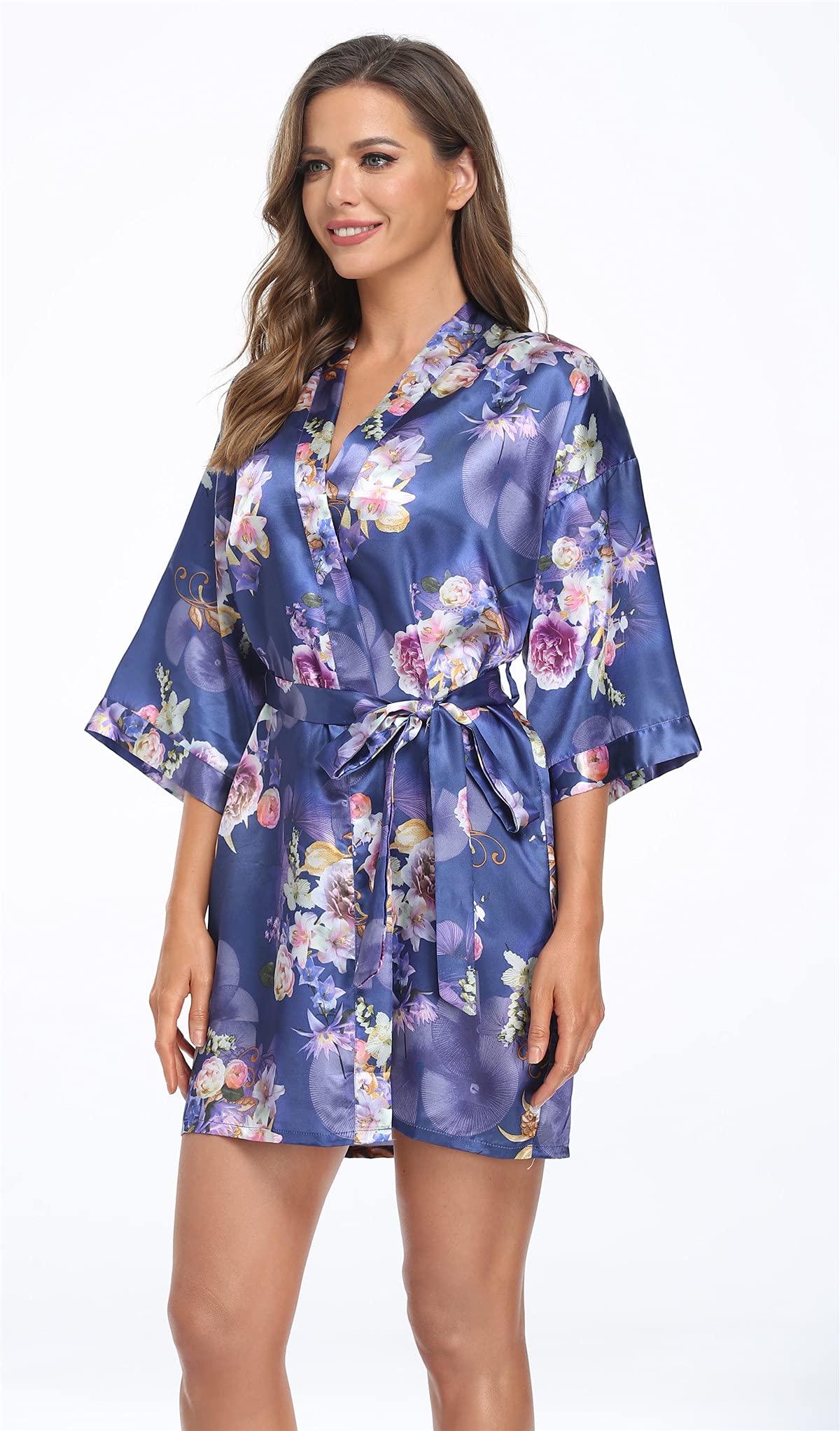 Beautiful floral satin robes /floral silk for women/floral bridesmaid robes with elegant oblique V-neck clear design.