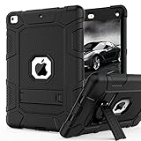 Compatibility: Compatible with iPad 2018 (6th generation) and 2017 (5th generation), model number: A1893 A1954 A1822 and A1823. Please Note: The case without built-in screen protector. Features: 1. The shock absorption case envelops you iPad in order to keep it safe from drops and bumps. 2. Raised screen and bezel Edges for extra protection when fall. 3. Kickstand Function: The back cover with kickstand provides convenience for your entertainment time. 4. Precise cutouts for improved access to all ports, buttons, cameras, speakers, and mics. Comfortable button feeling. 5. 3 in 1 design rugged tablet case provides protection to keeps the your iPad safe and secure. Package included 1 X Fashion Case for iPad 2018 (6th generation) / 2017 (5th generation) Note: The color as show in the picture may be a little different from the actual item because of color setting and lighting.
