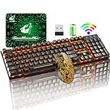 Wieless Gaming Keyboard and Mouse Combo Rainbow Backlight Quiet Ergonomic Mechanical Feeling Anti-ghosting Keyboard Mouse with Rechargeable 4000mAh Battery Mouse Pad for Computer Mac Gamer