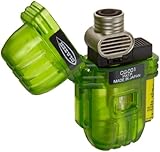 The Blazer CG-001 refillable butane lighter has a piezoelectric ignition system to apply direct heat to an object, and can be used to light pipes, cigars, and cigarettes. The lighter houses a piezoelectric ignition system, which is based on a pressurized molecular reaction, and requires no electric connection. Piezoelectric energy occurs when the trigger is activated, releasing a small, spring-loaded internal hammer that strikes a crystal, producing a spark and resulting in gas flame ignition. A window enables users to determine the amount of fuel remaining. The blue-torch flame is wind-resistant to provide precise control in outdoor or rugged conditions. The fuel-adjustment dial at the base of the lighter controls the flame length. The lighter weighs 1.3 oz. Blazer Products manufactures handheld butane micro torches, lighters, and ultrasonic cleaners. The company, founded in 1985, is headquartered in Farmingdale, NY.