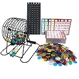 This bingo cage and balls set includes a metal cage, a calling board,50 colorful bingo cards,75 colorful balls,300 bingo chips and instructions.Everything you need to start playing right out of the box!