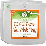 Much stronger and less messy than cheesecloth; Used by chefs; Super strong construction; Pulp free nut milks and juices; Easier to squeeze for faster results; Makes small or large recipes easily; A long lasting super strong reusable nut milk bag and versatile nylon food strainer