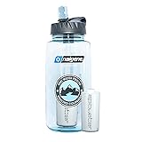 FILTERED WATER BOTTLE (LEAD WATER FILTER): This Nalgene water bottle with filter uses depth & adsorption filtration to be the perfect water purifier. Adsorption removes particulates via the activated coconut carbon fiber mesh surface areas, which adsorbs contaminants such as cysts, heavy metals, chemicals & pharmaceuticals. Depth filtration (6mm thick) involves the removal of suspended waste products as they try to pass through the millions of layers of coconut carbon fiber block.