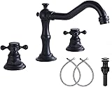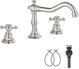 Welcome to GGStudy Details ★Type:Widespread 3 holes 2 handles bathroom sink faucet ★Installation:3-hole 8-16in installation ★Handles Number:2 handles ★Main Body Material:Brass ★Handle Material:Zinc Alloy ★Valve:Reliable Ceramic Cartridge The ceramic disc cartridge can survive 600,000 times open & close test. Sophisticated ceramic engineering provides both convenience and control precision ★Finish:Chrome ★Pop up drain include: Yes Specification ★Overall Height:5.9inch ★Spout Height:3.54inch ★Spout Reach:7.48inch ★Handle Height:3.14inch ★Handle Length:2.36inch ★Pop up drain hole fitting:1 5/8" Package ★1*Brand New Faucet ★1*Pop up drain with overflow ★1* 3/8 inch Hot and Cold Flexible Hoses ★1*Set Hardware After-Sales Service Please contact us if you have any problems and suggestions. Usually, you will get reply in 8 hours