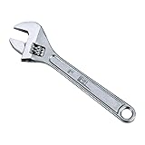 Edward Tools Adjustable Wrench is a heavy duty drop forged steel wrench that is made to last a lifetime. Simply slide the adjustable wrench to the correct jaw width and you are ready to go. Our wrench is made to have no give in selected width while lesser wrenches on the market will slip out. The rust and and corrosion resistant chrome finish keeps this wrench looking brand new even after a lifetime of use. Edward Tools Adjustable Wrench comes with a lifetime warranty.