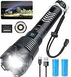 🔦【Super Bright 120000 Lumen Flashlight】Rechargeable flashlights built-in advanced XHP160 LED chip ,Super brightest flashlight can cast a wide beam that Lighten up a whole room or your backyard with ease and illuminate the things longest max up 1000meter/3280ft clearly.This handheld flashlight has a first-class service life of more than 120000 hours.