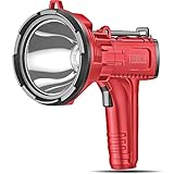SUPER BRIGHT SPOTLIGHT FLASHLIGHT: This high powered spotlight is up to 10x brighter than standard LED, casting 120000 lumen on high mode with lighting distances over 550 yards/2600 feet. LEDs boast an extended 50000-hour lifespan. Features 3 adaptable settings: High / Low / Flash(Long press 3 seconds). Removable filter enables both white and red light settings.