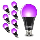 9W A19 LED Black Light Bulb Features Various applications: Suitable for Christmas or Halloween party, fluorescent posters, body art,Club, party, aquarium,etc. Easy to install: Simple to replace any E26 based bulbs, convenient to use. Specification Base type: A19 Power: 9W Color: Purple Input Voltage: AC 100-240V UVA Level: 390-400nm Notes 1.This bulb is NOT dimmable. 2.This is a black light bulb, the human eye can only see a small part of the light, so it will appear a little dim when lit. It is mainly used for fluorescence reaction and other purposes, if you just want to buy a violet light, it is not recommended that you purchase this black light bulbs. Package Include 4* A19 9W Blacklight Bulbs