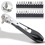 ✓【Dual-Purpose Ratchet Wrench】The ratchet wrench (4.3" long) is assembled with a 36-teeth reversible ratchet system to ensure smooth ratcheting in both directions. High-quality teeth provide high torque and precise adjustment compared to 12-teeth or 16-teeth ratchet. Simply flip the button to change direction for tightening or loosening the screws. Bit holders on the head and bottom of the wrench are strongly magnetized for holding the bits.