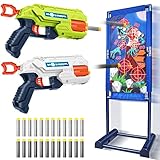 The shooting game toy set includes everything you need for a fun-filled day! It comes 2 foam ball popper blaster toys with a 360-degree rotatable handle, moving shooting target, a charging cable, and easy to setup. This set is a ton of fun, particularly the moving target.