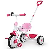 ADJUSTABLE HANDLE PUSH BAR: Designed with parents in mind, the kids tricycle features a three-gear adjustable push handlebar. This ensures a comfortable pushing experience, allowing you to easily guide and control the tricycle with push handle during walks and outdoor adventures
