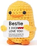 High Quality Knitted Duck: This crochet duck is made with high-quality yarn, meticulously hand-stitched for an appealing look. The funny home decor gifts include heartwarming positive gift cards. Measuring approximately 3.14 x 2.36 inches, these crochet ducks are compact and fit perfectly in pockets or backpacks.