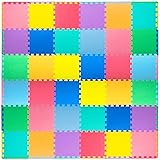The ProSource Kids Solid Puzzle Play Mat creates a brightly colored, comfortable and safe play area for children wherever you have hard floors. Colorful puzzle pieces and borders will help promote your baby’s brain growth and development, making it ideal for homes, child care providers, schools and churches. The gently textured surface provides a non-slip grip for extra safety and the 3/8-inch thick high-density EVA foam provides durable cushion for your child. It’s also water-resistant, making it easy to clean and keep free from odors. It covers a total of 36 square feet when fully assembled or if you prefer a smaller piece to make it convenient for your space, the 16 square feet can accommodate your needs when fully assembled. The mat can be customized by using only some of the tiles for smaller areas, or by purchasing an extra set to create a larger play area. Each tile is approximately 12 square inches and it comes with 24 border pieces for a finished look. Soft but firm interlocking pieces are easy and quick to assemble or take apart in case you need to quickly store it away or move it to another room. The lightweight play mat comes in a zippered bag which you can keep to transport or store your mat. This mat does not contain any toxic phthalates.