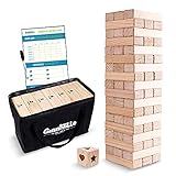 Giantville just put a big spin on a classic game! The Jumbo Wooden Blocks Game is a life-size version of your favorite game. It features quality wooden block pieces and a convenient carrying case that makes it easy to play anywhere. It’s perfect for family game nights and events. It’s great for indoor or outdoor play. Premium quality wood withstands every toss and tumble! Get the whole family involved in the fun; it’s a great game for every one of all ages to play. Stack your tower on a table or on the floor. No matter where you play everyone is sure to have a ton of fun! BENEFITS & FEATURES: 60 blocks Pine Wood Numbered Pieces Carry & Storage Crate Block Dimensions: 7.1” (long) x 2.3” (wide) x 1.4” (tall) Premium Quality Great for Events and Family Game Nights Instructions Included Great for Children and Adults Of All Ages Score Card CHANGE THE RULES! Play the game your way. Switch it up and create your own rules. 20 blocks are numbered so that you create unique bonus rules or play drinking games for adults. Assign a rule to a number like go again, reverse direction or skip player so that when a numbered block is pulled the player will follow the rule associated with the number. Change the rules to make the game appropriate for children or adults. Keep track of points with the scorecard and go round for round. The game can continue for as long as you like. GREAT FOR EVENTS AND PARTIES Enjoy the fun anywhere. The heavy-duty carrying case makes it portable and easy to take our tumbling tower game outside. It’s great entertainment for birthdays, BBQs, baby showers, camping, tailgating, frat parties and so much more! Enjoy playing in the sun or even at the beach. Get the whole family involved in the fun! Make your imagination larger than life. Giantville makes your play land extraordinary because we believe fun is number one.