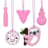 Chew Necklaces for Sensory Kids Boys Girls, 6 Pack Chewy Necklace Sensory Toys for Kids with Autism, Silicone Oral Motor Aids Chew Toys for Children Adults Reduce Fidgeting