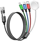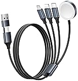 [4 in 2 Charging Cables] One cable = eight charging cables.The state-of-the-art 4-in-2 design features 4 different USB ports,including a watch port,iOS port,Micro USB,and Type-C,which support charging for most devices available on the market.Please note,this chargers for multiple devices is designed for charging only and does not support data syncing.