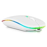 • [Rechargeable Optical Wireless Mouse] Compact 2.4GHz wireless and Bluetooth mouse compatible with Windows and Mac OS. Built-in durable 450mAh lithium rechargeable battery can last up to 500 hours after fully charged, and standby time is super long with auto sleep and wake mode. Easily recharged through the included USB cable, no need to change the battery.